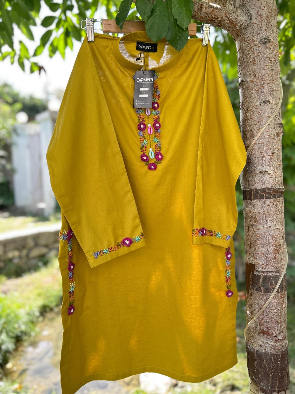 - Hand wash separately in cold waterUse mild detergentDo not bleachLine dry in shadeIron on low to medium heat, avoiding embroidery directly